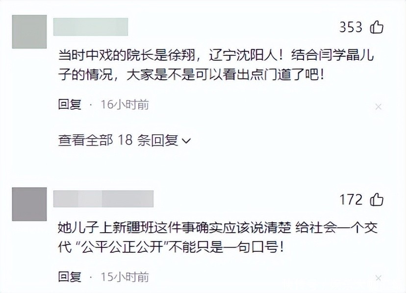 26. 随着讨论升温,舆论焦点逐渐从闫学晶母子转移至录取机构:中央戏剧学院。公众迫切要求校方公布当年录取的具体依据、审核机制及合规性说明。